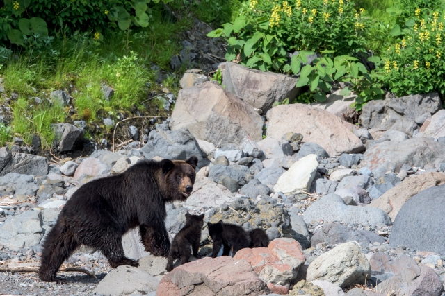 犬を連れての外出は熊を刺激するリスクがあると注意喚起されています。