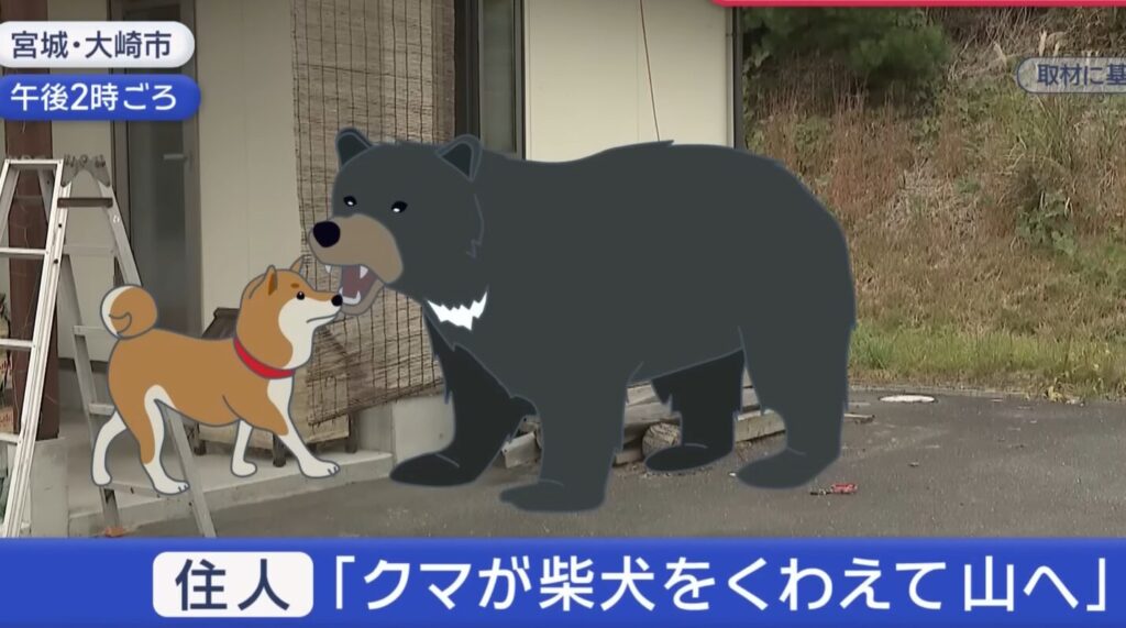 2025年10月、宮城県大崎市で熊が民家の庭先に現れ、飼われていた柴犬をくわえて森へ逃走する事件が発生しました。