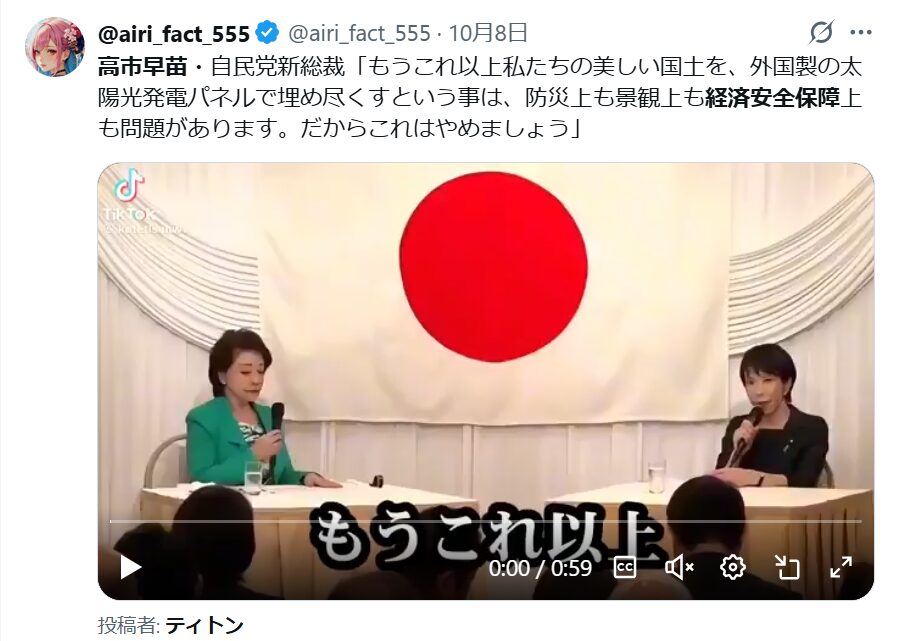 10月4日、高市早苗さんが自民党総裁となった際、トランプ大統領が送ったメッセージが注目されました。